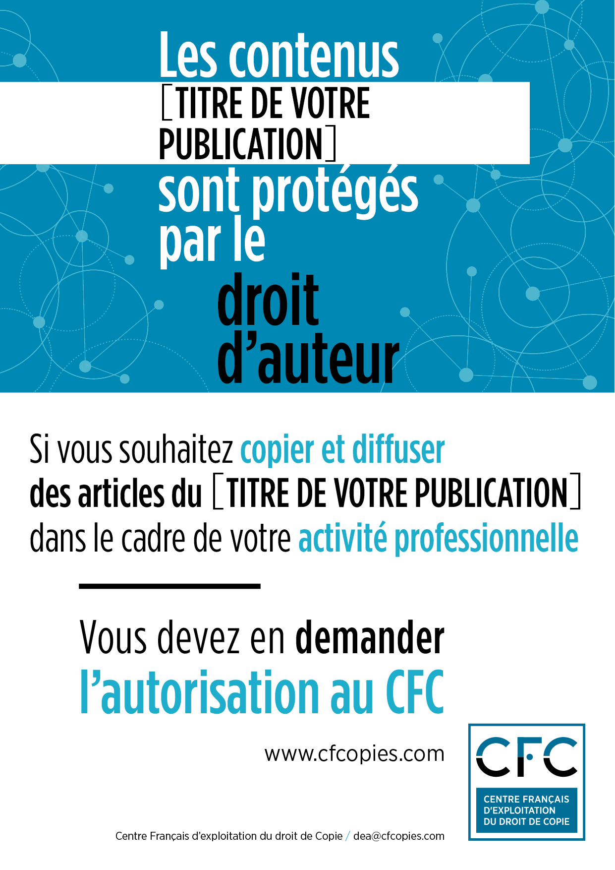 Vous avez confié au CFC la gestion de vos droits pour la diffusion des copies numériques d'articles de vos publications dans les entreprises et les administrations.