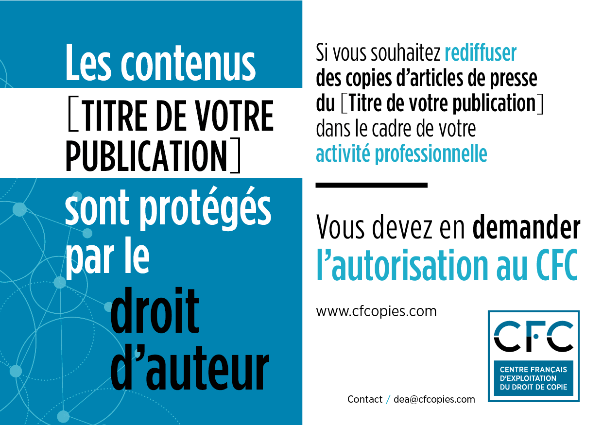 Afin de rappeler que toute utilisation de vos contenus presse dans un cadre professionnel est illégale sans autorisation préalable, nous vous proposons des annonces presse et des bannières à faire paraître dans vos titres papier et numériques.